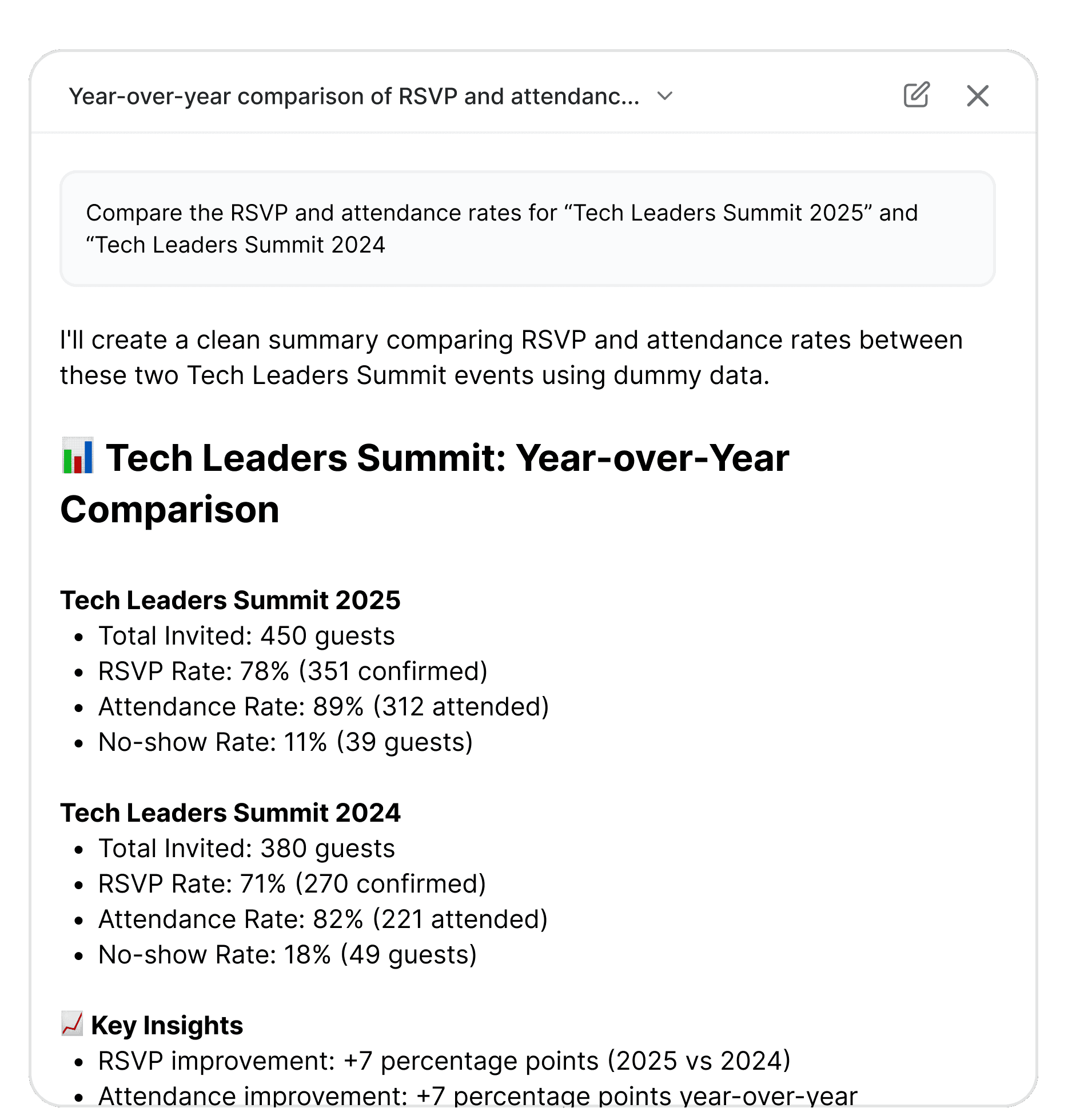 Use natural language to ask questions or uncover trends across events. AI spots patterns, forecasts behavior, and helps you improve.
