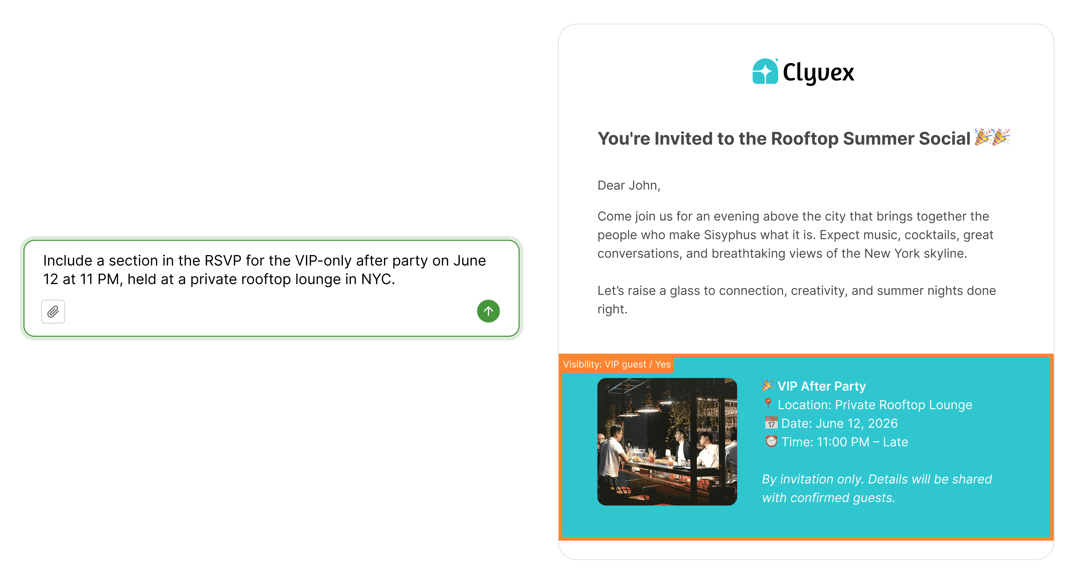 Start from a branded template and let AI tailor tone, content, and layout to each guest.